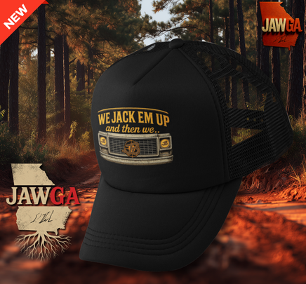 Turn it up and rep the Southern grind with the We Jack Em Up Package by JAWGA Originals. This complete set includes the fan-favorite “We Jack Em Up and then we…” shirt, matching trucker hat, koozie, and sticker, all featuring the rugged JB grille design. Built for lifted trucks, dirt roads, and good times, this package celebrates the JAWGA lifestyle in full throttle style.